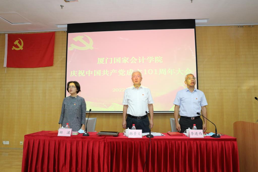 7月1日下午,厦门国家会计学院庆祝中国共产党成立101周年大会顺利举行。学院党委书记韩景义出席会议并讲话。学院党委委员、副院长李进西,党委委员、纪委书记、副院长郑涌出席会议。会议由李进西同志主持。学院全体在校师生党员参加大会。