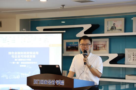 7月6日,学院教学法研讨会在云顶沙龙成功举办。经济管理与金融研究所洪祥骏博士做客沙龙,作题为“绿色金融财政政策运用与企业可持续发展”的分享。教研中心主任蔡剑辉教授、“一带一路”财经发展研究中心主任邓建平教授、教研中心副主任蹇薇副教授以及部分教师参加了本次研讨。本场沙龙由经济管理与金融研究所所长陈智华副教授主持。