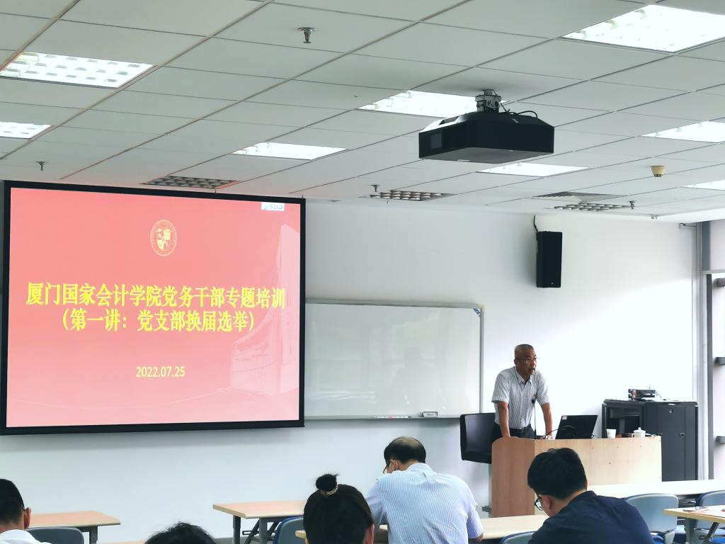 为深入推进学习习近平新时代中国特色社会主义思想,进一步促进党建的标准化规范化建设,不断提升全体专兼职党务干部的理论素养、政策水平和业务能力,7月25日下午,2022年学院党务干部专题培训第一讲——党支部换届选举专题辅导在教学楼204开讲。学院全体师生党支部书记、支部委员参加了培训。