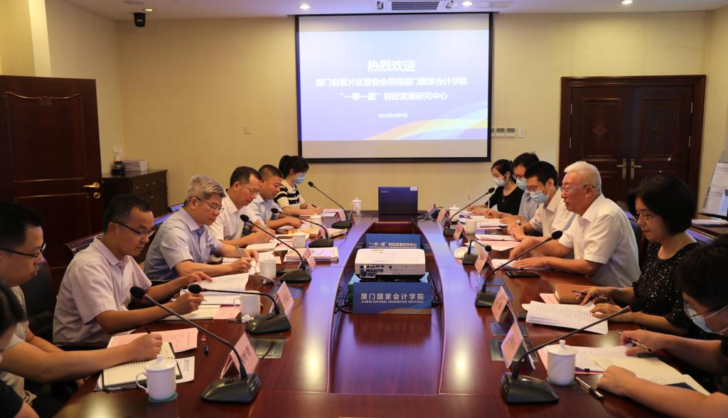 8月9日,厦门自贸片区管委会(以下简称自贸委)常务副主任熊衍良,政策法规局局长邓光雄等一行莅院交流工作。学院党委书记韩景义,党委委员、纪委书记、副院长郑涌会见来宾并座谈交流。“一带一路”财经发展研究中心主任邓建平、副主任王智烜,自贸委经济发展局三级调研员许建民等参加座谈。双方就合作开展政策研究,交流研讨培训等相关事宜初步交换意见。