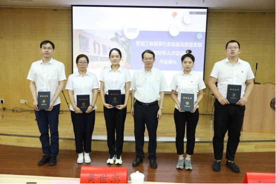 黄世忠院长对各位领导与学员的信任表示感谢,对学员们在疫情期间严守纪律、勤学笃实给予充分肯定。他谈到,通过学院两年的精心筹备,不仅进一步夯实大家的专业基础,也进一步拓展了大家的视野和思维。他希望学员们将所学所获运用于工作实践中,真正发挥引领作用,为黑龙江烟草的转型升级和高质量作出新的更大贡献,并希望与中国烟草总公司黑龙江省公司在财审人才的能力建设和培养工作中开展更深入的合作。