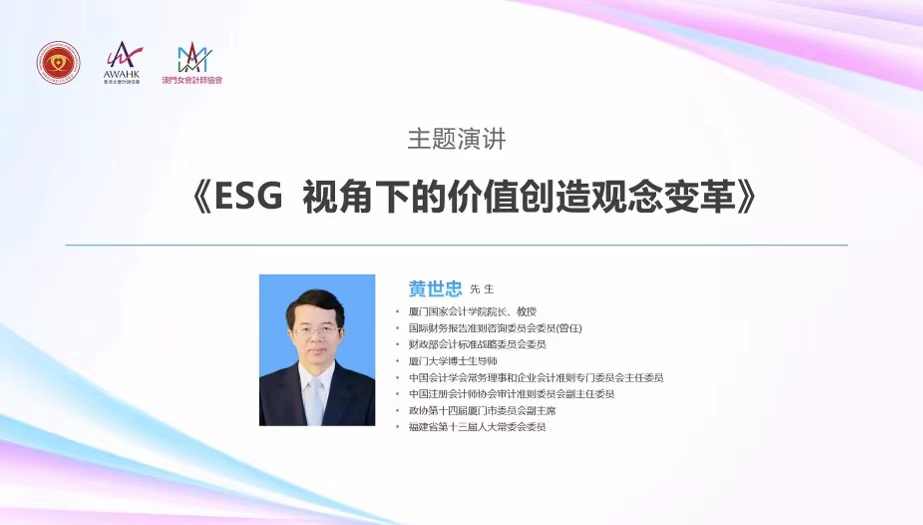 2022年8月25日,“2022深港澳CFO论坛”在德勤大湾区双创中心隆重举行。本次论坛由深圳市女财经工作者协会、香港女会计师协会和澳门女会计师协会共同主办,深港澳女董事联盟支持,德勤中国协办。我院黄世忠院长应邀以线上方式在论坛上作了《ESG视角下的价值创造观念变革》的主题报告。