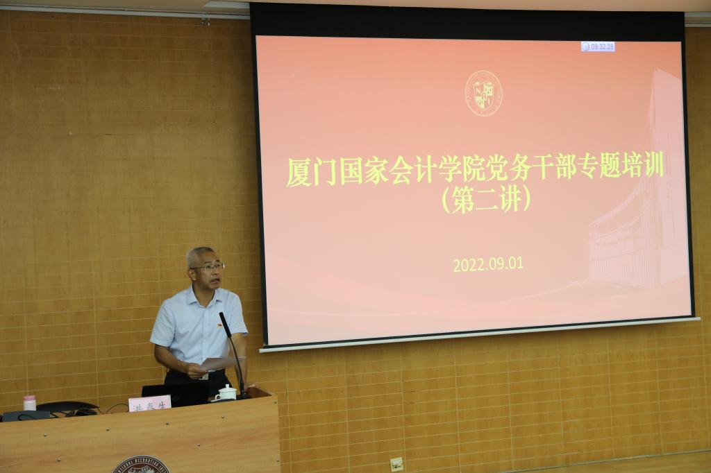 为深入贯彻落实习近平总书记关于意识形态工作的重要论述精神和财政部党组关于做好财政领域意识形态工作的有关部署,9月1日上午,学院党委组织举办学院2022年党务干部培训班第二讲,邀请厦门大学党委宣传部副部长洪春生来院作题为《网络意识形态的挑战与策略》的专题辅导报告。学院党委委员、副院长李进西主持培训会,党委委员、纪委书记、副院长郑涌和全体专兼职党务干部参加培训。学院教工党员干部、全体专职教师也一同聆听了辅导报告。