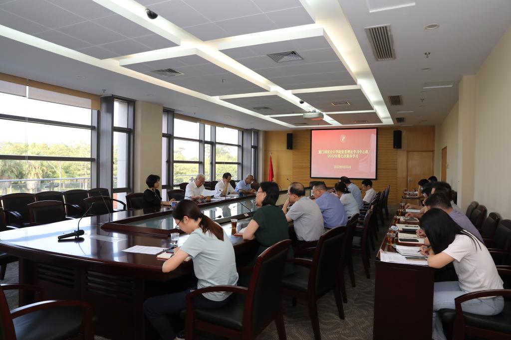 9月23日,厦门国家会计学院党委理论学习中心组举行2022年第七次集体学习。本次集体学习的主题是深入学习《习近平谈治国理政》第四卷和《闽山闽水物华新——习近平福建足迹》系列图书,深刻领会习近平新时代中国特色社会主义思想。学院党委书记韩景义主持集体学习并讲话,学院院长黄世忠,党委委员、副院长李进西,党委委员、纪委书记、副院长郑涌和全体中层干部参加学习交流。