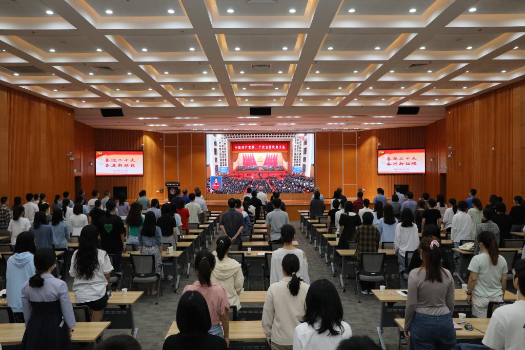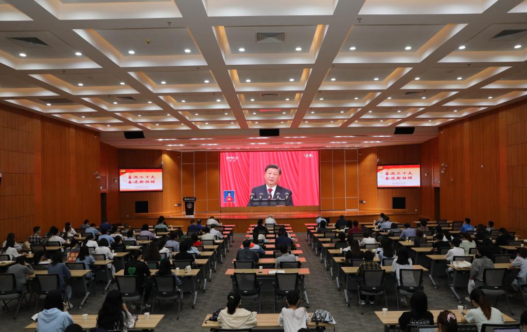 奋进新征程,建功新时代。10月16日上午,举世瞩目的中国共产党第二十次全国代表大会在北京人民大会堂隆重开幕。根据财政部党组的统一部署,厦门国家会计学院党委高度重视、精心安排,集中组织师生员工和在院参训学员收看党的二十大开幕会现场直播盛况,认真聆听习近平总书记代表十九届中央委员会向大会所作的报告。学院党委书记韩景义,党委委员、副院长李进西,党委委员、纪委书记、副院长郑涌,十三届全国人大常委会委员、学院老领导邓力平教授和在校教职员工、研究生等约200人在学术报告厅B区集中收看,院长黄世忠参加厦门市民主党派机关集中收看,在院参训的各培训班全体学员在教学楼各会场集中收看。