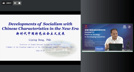 适逢中国共产党第二十次全国代表大会隆重召开,第十三届全国人民代表大会常务委员会委员、厦门国家会计学院教授邓力平作题为《新时代中国特色社会主义发展》的讲座,全程用英文介绍过去十年中国取得的重大历史成就和发生的历史性变革,重点宣介党的二十大精神,深入阐述中国式现代化的内涵,展示中国在促进世界和平与发展、推动构建人类命运共同体方面做出的不懈努力和巨大贡献。