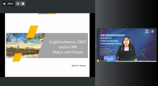 学院蹇薇副教授介绍了加密数字货币的发展现状,各国政府主导研发的央行数字货币概况;重点分享中国数字人民币的研发进展、特征、试点情况等,并对数字人民币与第三方支付竞争、跨境支付等方面进行展望。