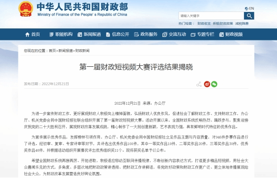日前,由财政部办公厅、机关党委会同中国财经报社联合组织开展的第一届财政短视频大赛评选结果揭晓,厦门国家会计学院获评优秀组织奖。同时,学院选送的作品《往事记忆》从946件参赛作品中脱颖而出,荣获三等奖。