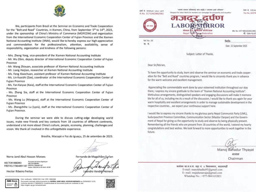 来自巴西参训官员的感谢信 来自尼泊尔参训官员的感谢信