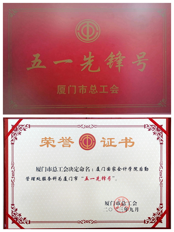 近日,厦门市总工会印发了《关于命名市“五一先锋号”和表扬“五一先锋号”优胜集体的决定》(厦工〔2023〕45号),学院后勤管理处服务科荣获厦门市“五一先锋号”先进集体称号。