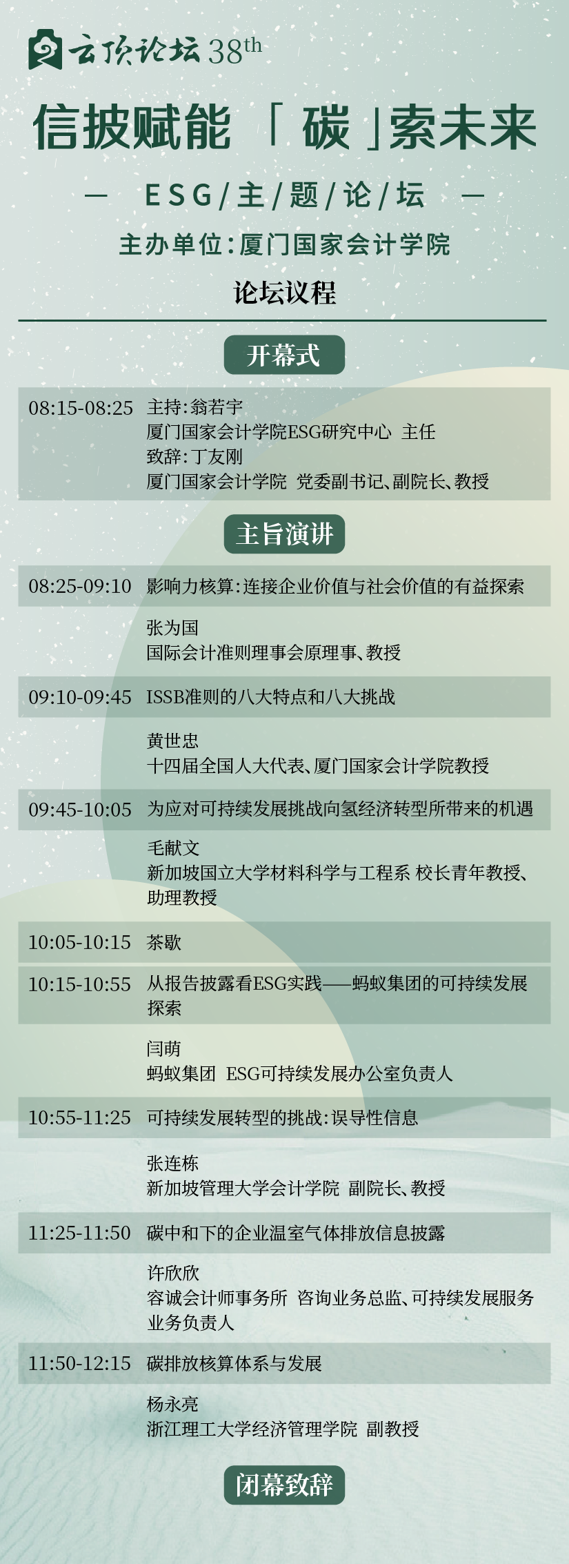 在此背景下,厦门国家会计学院将于2023年10月28日在学院举办“信披赋能‘碳’索未来”主题论坛。本论坛旨在探讨企业在环境保护和可持续发展方面的角色和责任,分享企业在绿色发展方面的成功案例,以及讨论如何进一步加强企业的环境管理和碳排放控制,诚邀您出席。