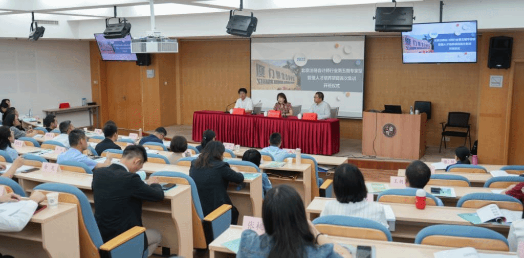 为加强北京地区注册会计师行业人才队伍建设,培养和造就一批年富力强、精通业务、善于管理的高素质、复合型人才,2023年10月17日至22日,北京注册会计师协会举办第五期行业专家型管理人才培训班第一次集中培训。北京注册会计师协会秘书长张梅、副秘书长薛晋伟出席开班仪式。北京注协考试培训部相关负责人、厦门国家会计学院相关老师及50名学员参加培训。
