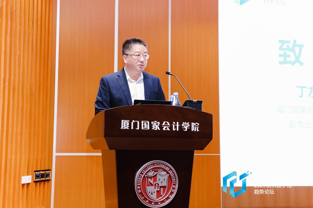 厦门国家会计学院党委副书记、副院长丁友刚教授首先对嘉宾的到来表示热烈欢迎。他表示,在全球数字化浪潮风起云涌的大背景下,如何抢抓数字化发展历史机遇,推动财务管理升级重构,充分发挥财经人才价值,更好地赋能经济高质量发展,已经成为我们全体财经人共同思考的重要命题。他强调,厦门国家会计学院始终高度重视我国高层次财经人才培养,密切关注财经领域未来的发展趋势。他相信,凝聚财经人的共同智慧和力量,一定能够为中国经济社会高质量发展做出更大贡献。