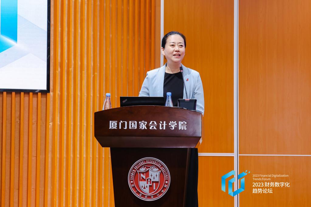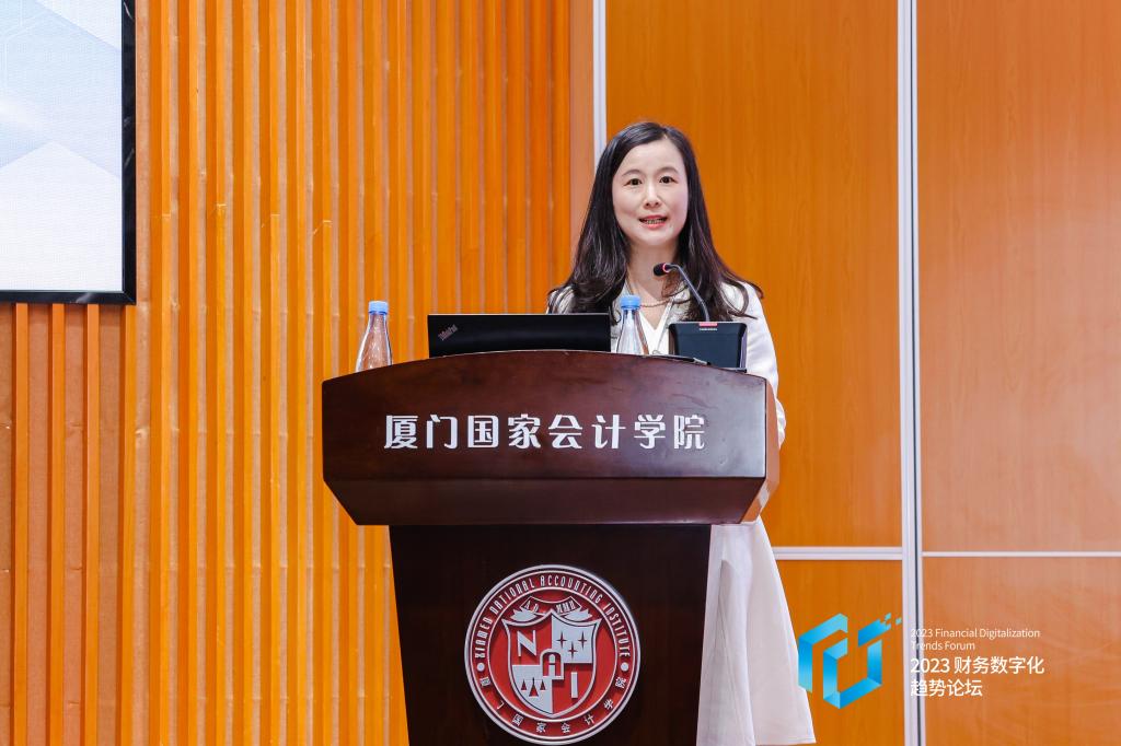 作为论坛特别环节,厦门国家会计学院、中兴新云服务有限公司和IMA管理会计师协会的领导代表共同发布《2023-2024年中国财务数字化报告》,中兴新云服务有限公司副总裁赵旖旎女士深入解读了中国企业财务数字化转型现状与未来发展趋势。