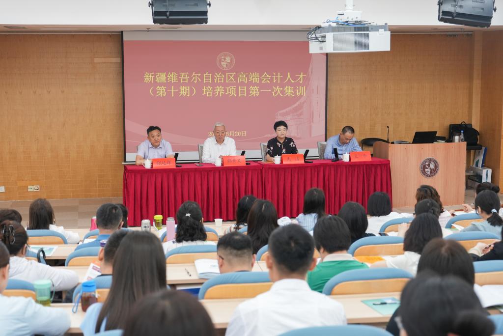 为贯彻落实新疆维吾尔自治区新时代人才强区战略,着力提升财会人员能力素质,适应自治区经济社会高质量发展需要,5月20日,新疆维吾尔自治区高端会计人才(第十期行政事业类)培养项目在学院顺利开班。来自全区各行政事业单位的50名培养学员参加了本期培训。自治区财政厅党组成员、副厅长、一级巡视员朱洁、学院党委书记韩景义、教务处处长王一平出席开班仪式。开班仪式由自治区财政厅会计处负责人张延辉主持。