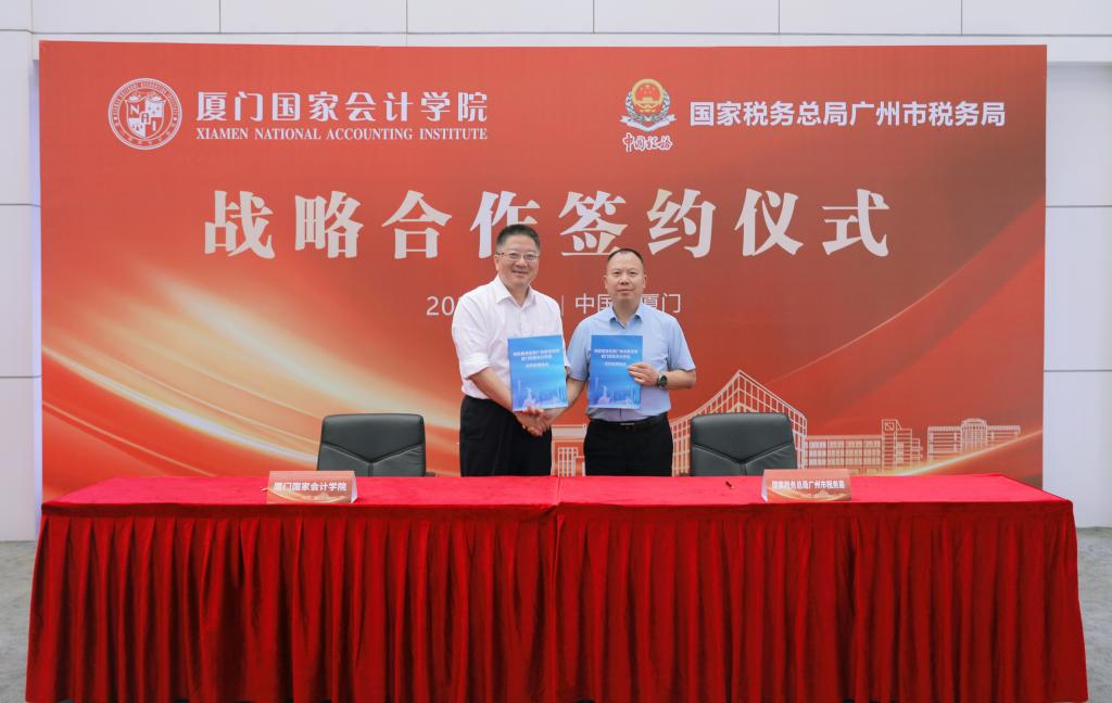 5月30日下午,学院与国家税务总局广州市税务局签署战略合作协议,双方将在联学共建、人才培养、科学研究、税收宣传等领域开展合作,进一步推动相互之间的协同发展。国家税务总局广州市税务局党委委员、副局长罗得力,厦门国家会计学院党委副书记、副院长丁友刚出席签约仪式。广州市税务局、学院相关人员及来自“2024年广州市税务局财会税政专题培训班”的20名学员代表参加本次签约仪式。