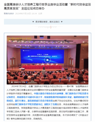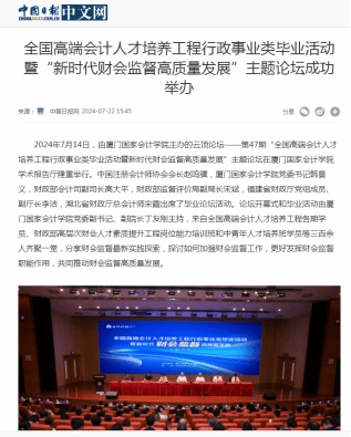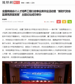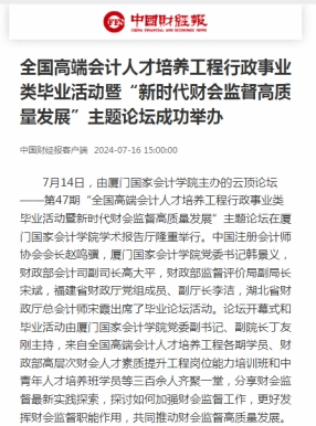 7月14日,由学院主办的云顶论坛——第47期“全国高端会计人才培养工程行政事业类毕业活动暨新时代财会监督高质量发展”主题论坛在厦成功举办。中国日报网、凤凰网、《中国财经报》《中国会计报》《财务与会计》等多家主流媒体对本次论坛高度关注,纷纷进行转载报道。