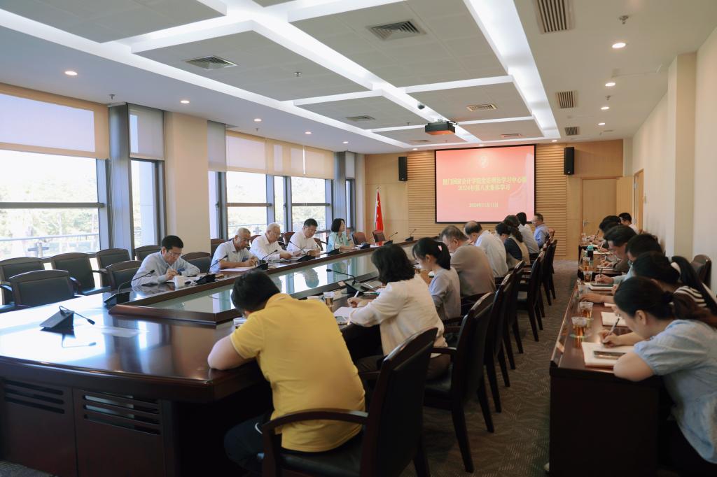 11月11日,厦门国家会计学院党委召开学院党的建设工作小组全体会议暨党委理论学习中心组2024年第八次集体学习。本次会议的主要内容是深入学习领会习近平法治思想,传达学习有关党内法规和财政部文件要求;深入学习领会习近平总书记关于全面加强党的纪律建设的重要论述和习近平总书记关于党纪学习教育重要指示,并对学院党纪学习教育作总结。学院党委书记韩景义主持会议并讲话,院领导班子成员、各基层党组织书记、副书记、纪检委员参加学习交流。