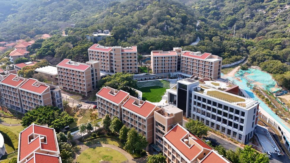 该综合楼总建筑面积约1.9万平方米,集教学、科研、学生宿舍及餐饮功能于一体,旨在满足学院日益扩大的办学需求。此外,该综合楼依山就势,巧妙融入自然景观,保留古榕树、巨石等历史印记,构建出多层次绿化景观系统,完美诠释“建筑生长于自然”的生态理念。