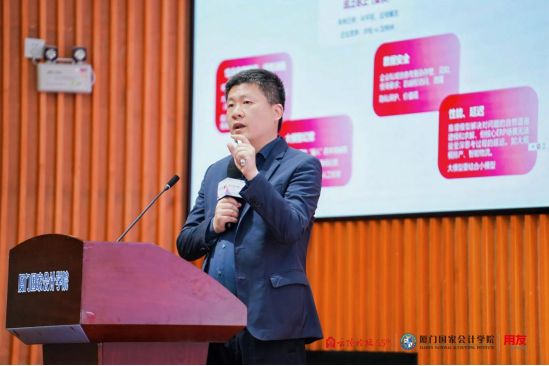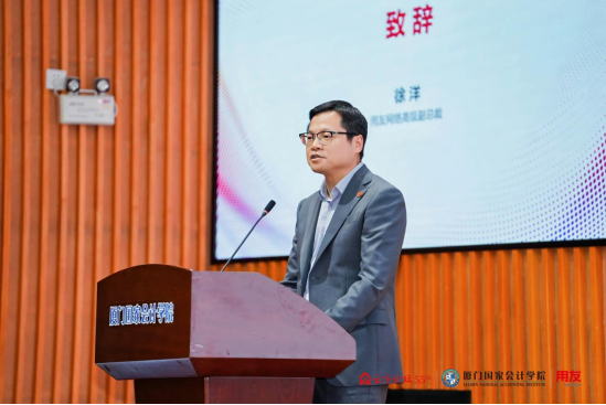 大会伊始,厦门国家会计学院党委副书记、院长、教授丁友刚在致辞中表示,当前人工智能已掀起重塑经济社会的浪潮,财务领域正发生深刻变革,智能算法解放财务人员,打破业财壁垒,构建业财数据实时交互体系,助力企业精准决策,对企业战略布局意义重大。本次论坛旨在集中展示人工智能赋能企业财务数智化的成果,凝聚行业智慧、促进经验共享,探索未来发展新路径。学院希望共邀行业各界嘉宾共赴这场变革盛会,解锁财务引领企业战略的潜能,让财务成为驱动企业发展的“智慧引擎”。