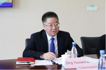 丁友刚向查理穆哈梅特·沙利耶夫一行表示热烈欢迎,并介绍了学院高端培训、学位教育和智库建设“三位一体”办学模式及所取得的成果。丁友刚指出,自2017年双方签订合作备忘录以来,厦门国家会计学院与中亚学院在国际论坛、学术研讨、能力建设方面的合作富有成效。未来,期待双方在联合研究方面有所突破,并争取形成机制性合作项目,助力国际财经领域交流合作取得新进展。