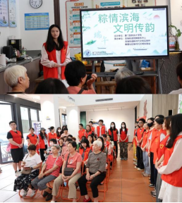 迈进新时代,文化自信已然成为国家和民族发展中最基本、最深沉、最恒久的力量源泉。为进一步推动中华优秀传统文化浸润思政育人实践,积极践行“青年深入基层”的号召,5月26日下午,学院团委精心组织,带领学院学生志愿者携手滨海街道新时代文明实践所、黄厝社区新时代文明实践站,在黄厝社区塔头会客厅开展“粽香滨海情,文明韵悠长”主题端午活动。