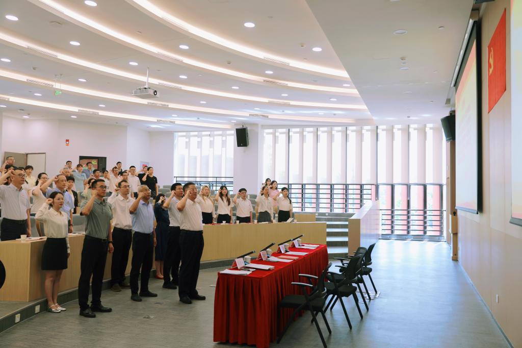 重温入党誓词,淬炼如磐初心。大会现场,丁友刚同志带领全体党员重温入党誓词,党员们神情肃穆,面向鲜红党旗,高举右拳,齐声庄严宣誓:“我志愿加入中国共产党…… 随时准备为党和人民牺牲一切,永不叛党。”铿锵有力的誓言字字千钧,让每一位党员的心灵都经受了深刻的精神洗礼。这一字一句不仅是对入党初心的回溯,更是对使命担当的再承诺,进一步筑牢了党员们为党和人民事业奋斗终身的理想信念根基,激励着大家以更饱满的热情、更坚定的决心投身未来的工作与学习中。
