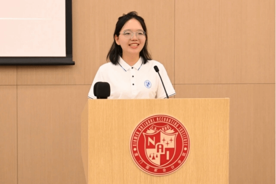 2024级会计班孔丽佳同学作为在校生代表分享经验。结合担任班长以及参与ACCA全国就业力大赛的经历,她提出三点感悟:一是找准方向,树立目标,尽快适应研究生节奏,在服务他人与自我反思中明确职业路径;二是保持两种热情,既坚守对专业的执着探索,也拥抱校园活动与城市风光,让生活饱满温暖;三是收获三份美好,在学术积淀中成长、在实践中提升综合能力、在互助中收获真挚情谊。