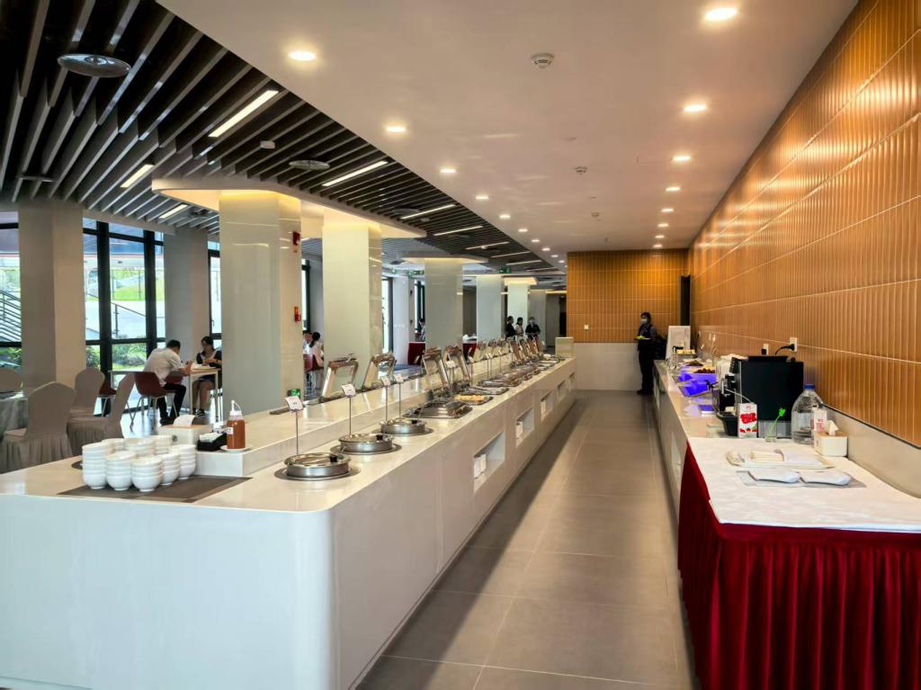 目前,学院一共有学员餐厅、研究生餐厅和教工餐厅三个餐厅。食材供应与食品安全管理严格按照高标准执行,每日菜品由专业团队精心搭配,注重营养均衡,努力做好培训学员和师生员工的“能量补给站”。