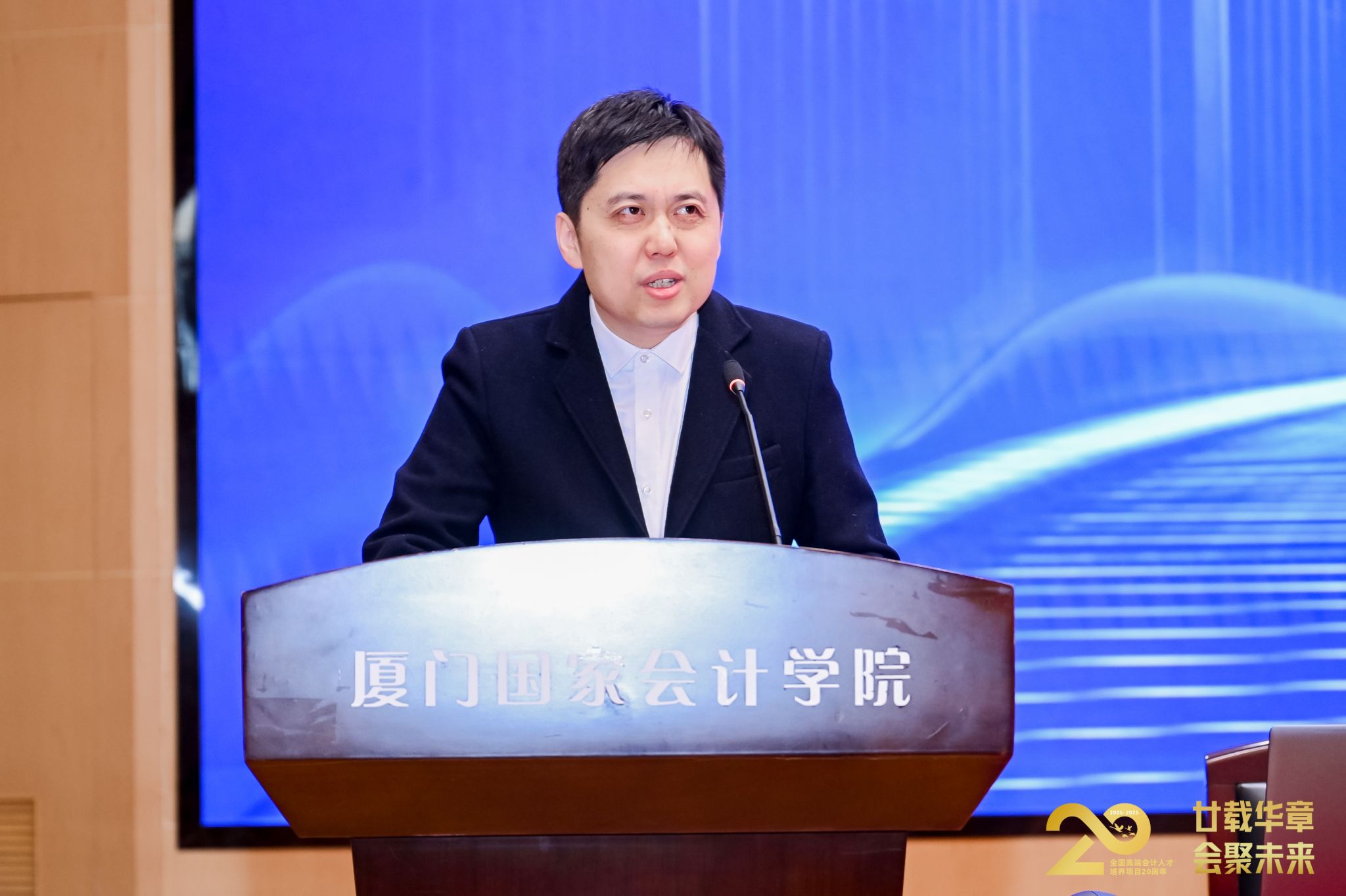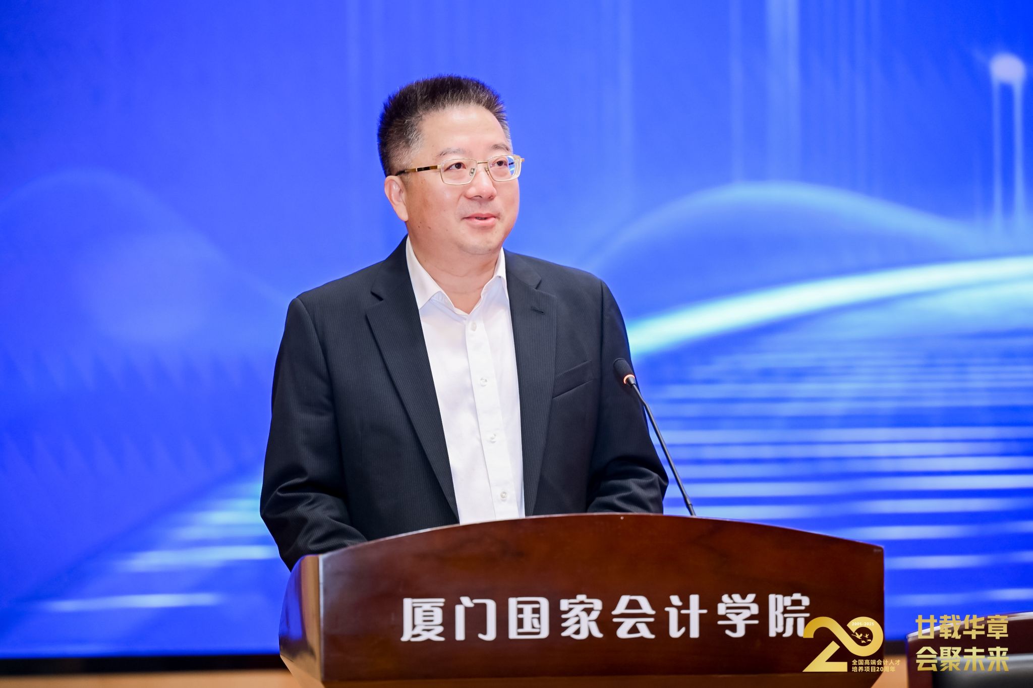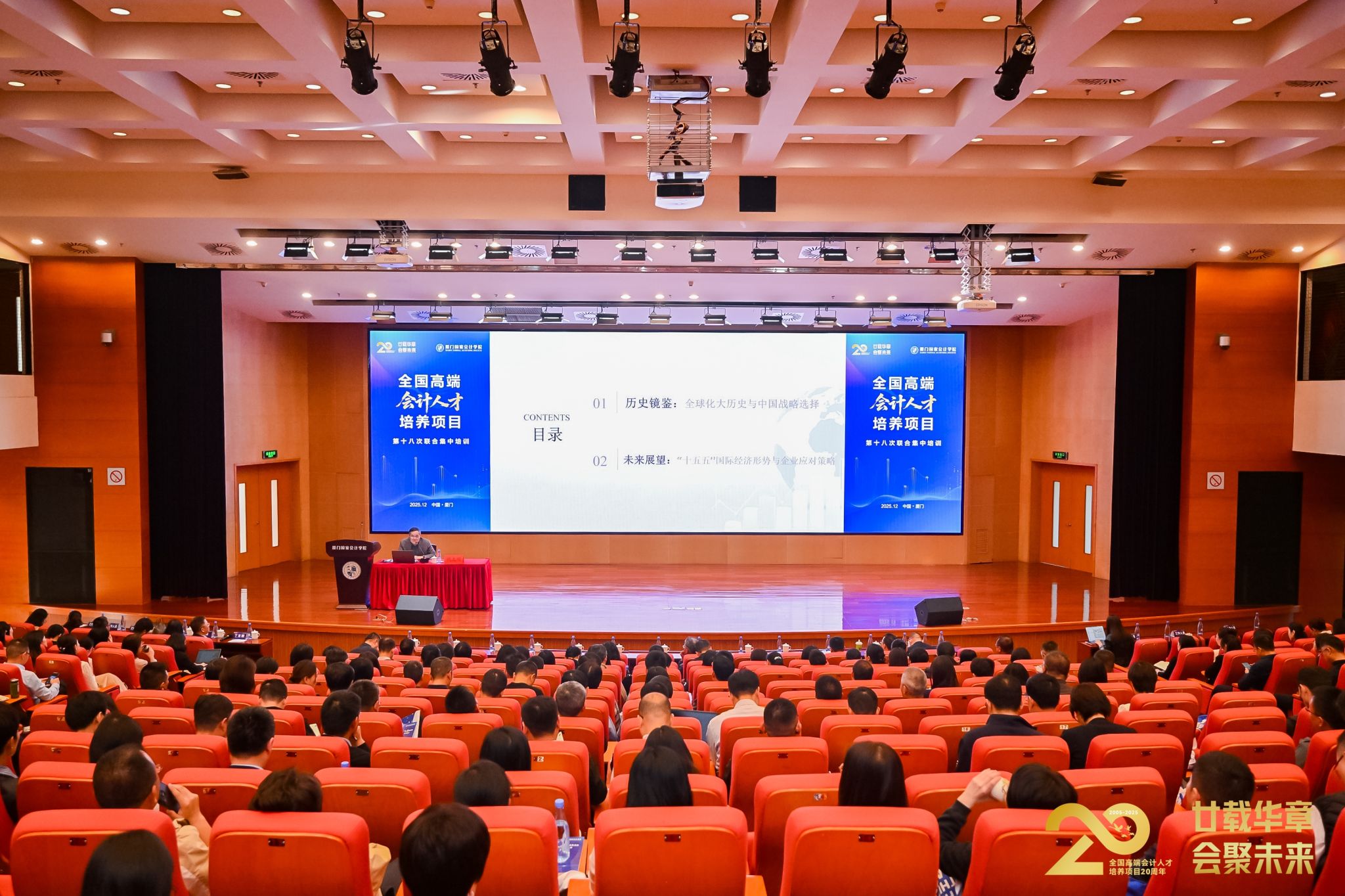 2025年12月1日,全国高端会计人才培养项目第十八次联合集中培训暨项目二十周年总结活动在厦门国家会计学院开班。学院党委副书记、院长丁友刚主持培训开班式,财政部会计司会计人员管理处二级调研员赵劼在开课前强调了培训纪律。