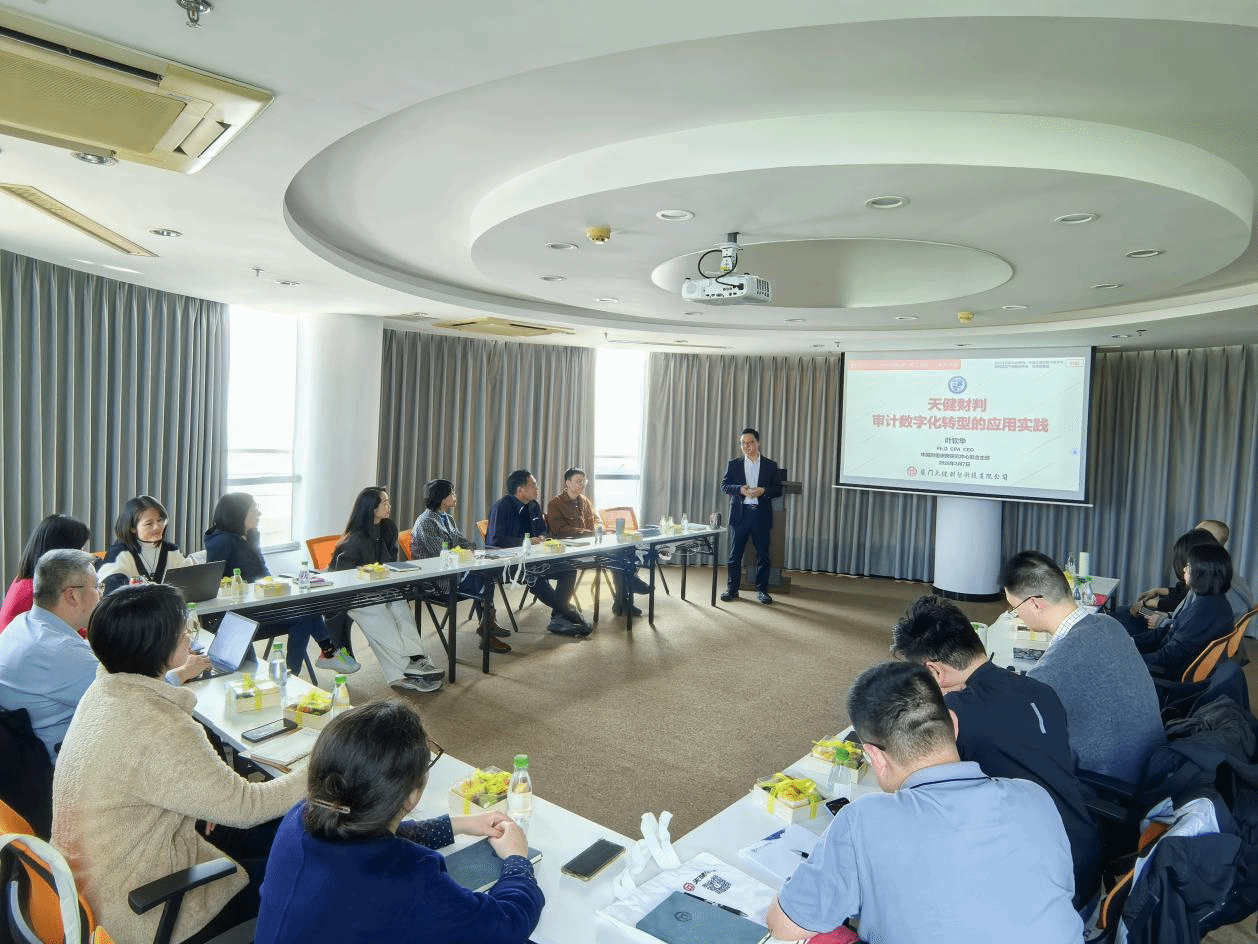近日,学院组织2025级审计专业博士生赴厦门天健财智科技有限公司开展产学研实践课堂教学。作为《审计理论与前沿》课程的重要教学环节,本次活动由学院中国财务舞弊研究中心联合主任叶凡副教授带队,特邀厦门天健咨询有限公司董事合伙人、天健财智联合创始人叶钦华博士担任主讲嘉宾,作题为《天健财判——审计数字化转型的应用实践》专题报告。