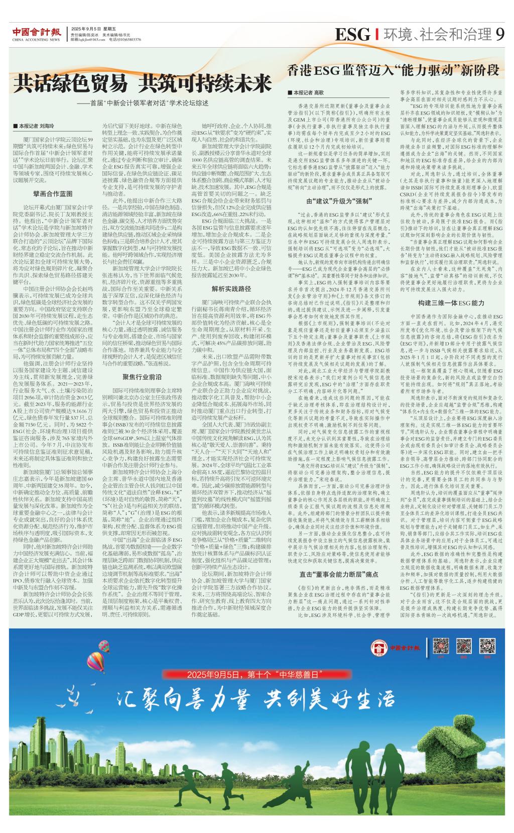 厦门国家会计学院云顶论坛59期暨共筑可持续未来:绿色贸易与国际合作首届“中新会计领军者对话”学术论坛日前举行。论坛汇聚中国与新加坡两国会计、金融、学术等领域专家,围绕可持续发展核心议题展开交流。