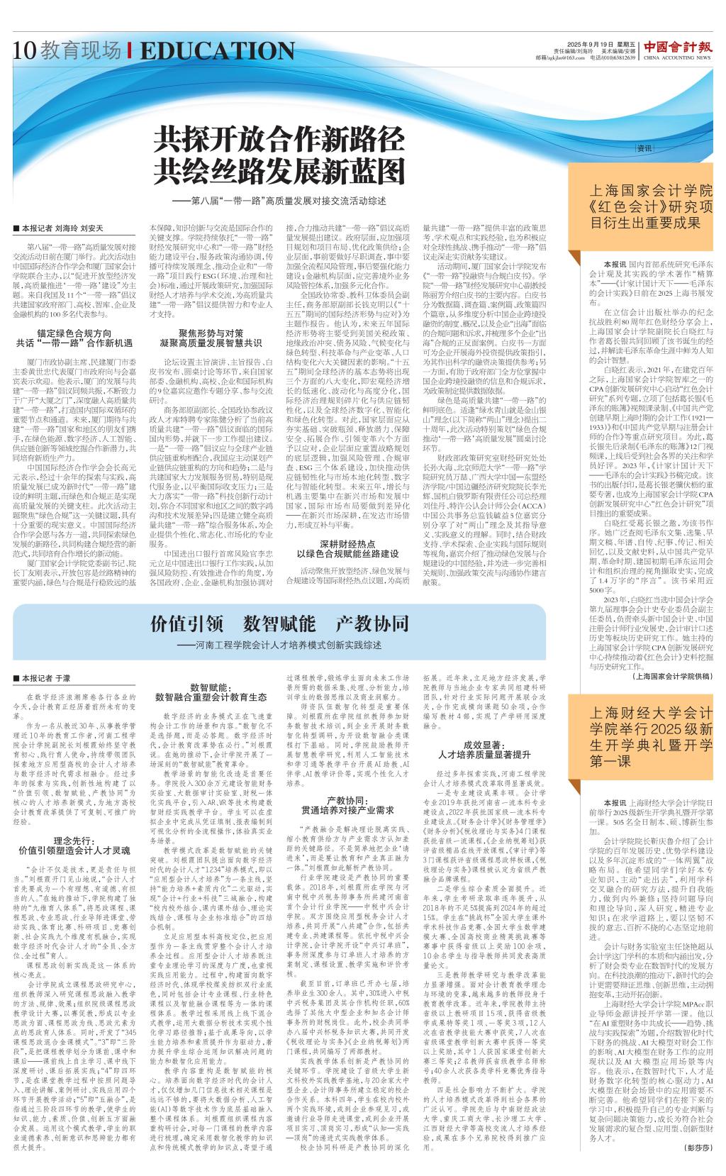 厦门国家会计学院党委副书记、院长丁友刚表示,开放包容是丝路精神的重要内涵,绿色与合规是行稳致远的基本保障,知识创新与交流是国际合作的关键支撑。学院持续依托“一带一路”财经发展研究中心和“一带一路”财经能力建设平台,服务政策沟通协调,传播可持续发展理念、推动企业和“一带一路”项目践行ESG(环境、治理和社会)标准,通过开展政策研究,加强国际财经人才培养与学术交流,为高质量共建“一带一路”倡议提供智力和专业人才支持。