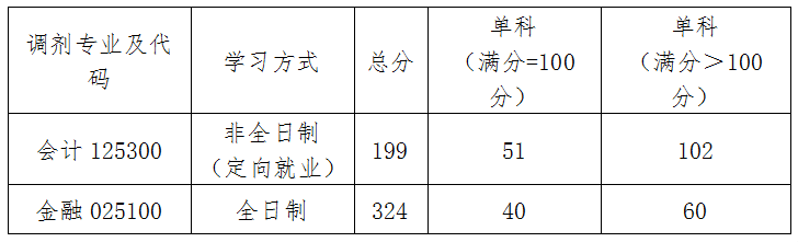(五)根据调剂专业名额及报考生源情况,会计专业(非全日制)、金融专业(全日制)调剂复试采取300%的差额复试比例;对申请同一专业、初试科目相同的调剂考生,按考生初试成绩择优遴选进入复试。
