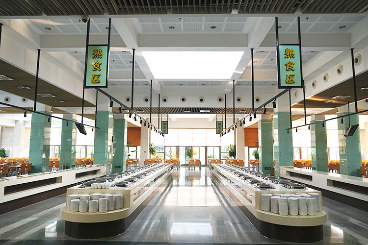 翻新后的学院餐厅A区自助餐台(在现有培训规模大幅度提升的情况下,原有餐台已不能满足我院接待能力的需要)