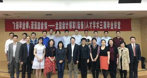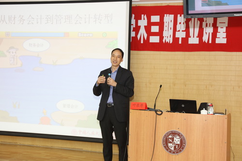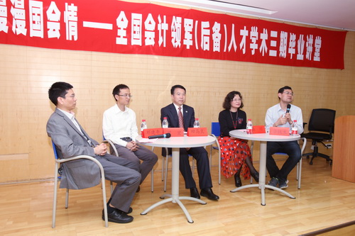 4月16日下午,全国会计领军(后备)人才学术三期培训班学员在我院举办了一场精彩的毕业讲堂活动。学术三期全体学员已在我院完成六年的系统学习,将于今年年底毕业,本次活动也是为表达对培养母校的感恩之情,将六年来的所思所想所学,以毕业讲堂的方式回馈母校,将最前沿的会计知识和信息与大家分享交流,也是为我院MPACC全日制研究生未来职业规划开展的讲堂活动。中国会计学会田志心副秘书长、我院黄世忠副院长、教务处黄京菁处长莅临讲堂聆听研讨。邓建平老师以研究生处副处长和学术三期学员的双重身份,主持毕业讲堂。