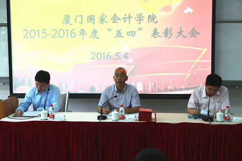 大会在雄壮的国歌声中拉开帷幕。院团总支书记林学颖代表院团总支作了学院2015-2016年度共青团工作报告,报告从校园文化建设、思想引领、志愿服务、自身组织建设等方面回顾了过去一年院团总支的工作成效。随后,林学颖宣读了院团总支关于表彰厦门国家会计学院2015-2016年度优秀共青团员的决定,谢培芬等10名团员获得表彰。院党委委员、院长助理李进西向获表彰人员颁发荣誉证书。