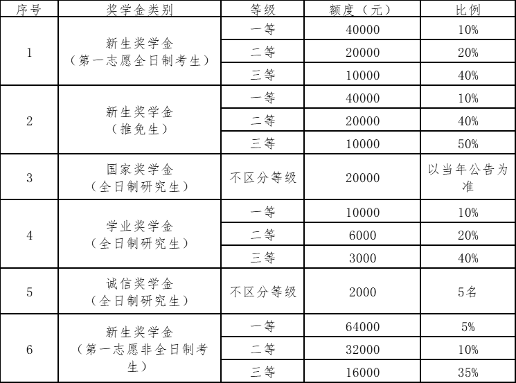我院研究生奖助体系基本情况见下表: