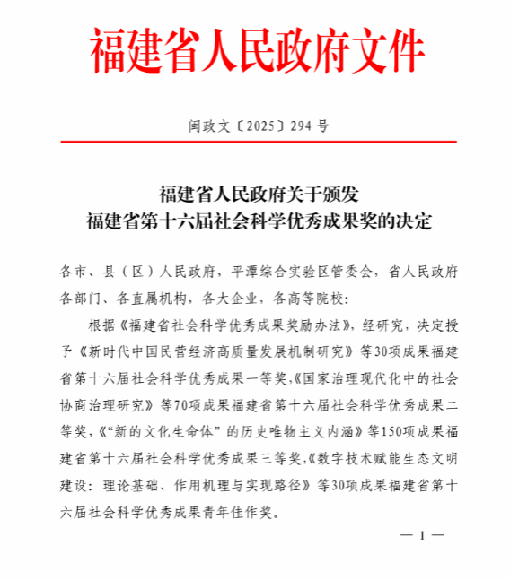 喜报:我院教师荣获福建省第十六届社会科学优秀成果奖