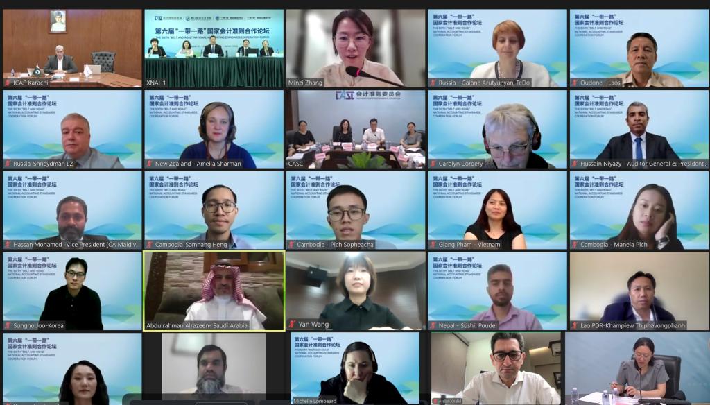 2024年7月23日,由财政部会计司、会计准则委员会主办,厦门国家会计学院承办的第六届“一带一路”国家会计准则合作论坛在线上召开。来自中国、老挝、尼泊尔、新西兰、巴基斯坦、俄罗斯、沙特阿拉伯、越南、柬埔寨及马尔代夫等国家会计准则制定机构代表围绕国际可持续披露准则应用进展、可持续披露相关能力建设经验、数据资源及土地租赁付款等议题展开交流研讨。韩国会计研究院作为观察员也通过线上平台出席论坛。