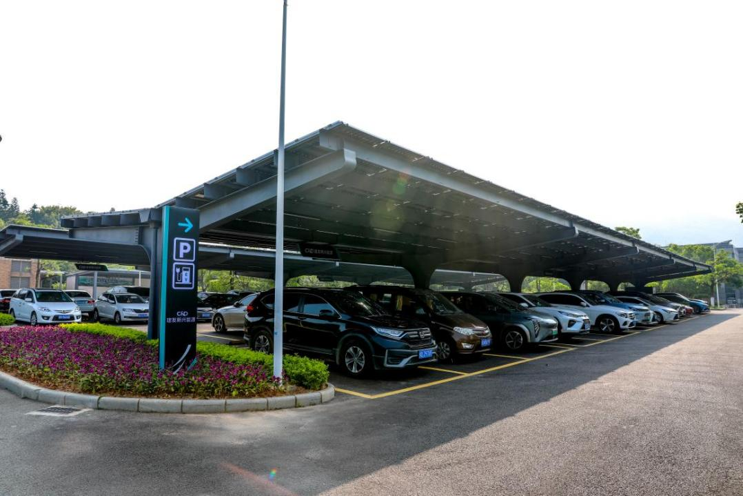 光伏车棚项目也是学院党委“为群众办实事”的重要举措之一。光伏车棚和充电桩的建成,不仅为教职员工电动汽车充电提供了便利,而且将原来“日晒雨淋”的停车场变成了现在“遮阳挡雨”的光伏车棚,有效解决了教职员工夏季停车难题和电动汽车充电需求。