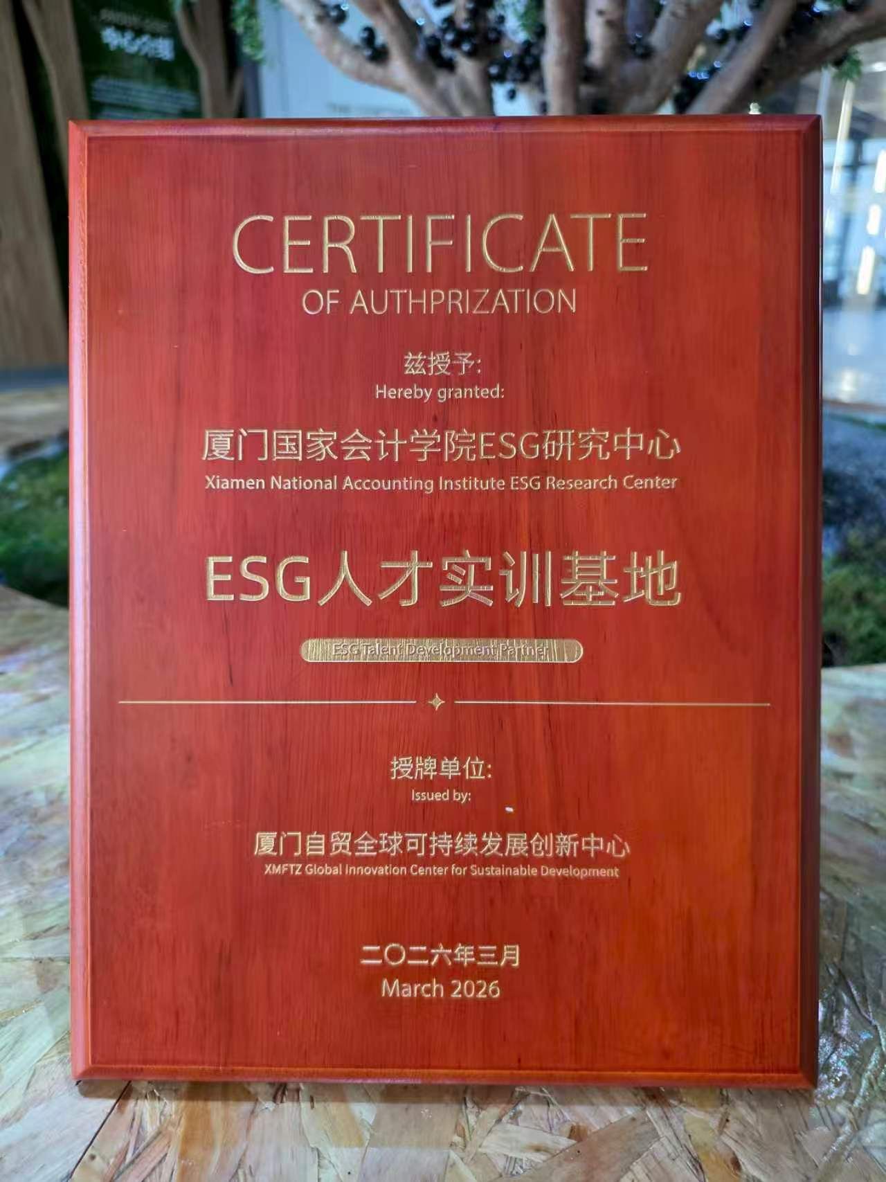 3月26日,厦门自贸全球可持续发展创新中心正式启动,联合国同一个地球网络可持续产业创新实验室同步落地。这是厦门自2025年4月发布《厦门市环境、社会和治理(ESG)发展行动方案(2025-2027年)》以来,推进ESG试点区建设、对接国际高标准经贸规则取得的重要阶段性成果。作为厦门市ESG权威智库与重要研究力量,学院应邀参加本次活动,ESG研究中心主任翁若宇副教授代表学院接受厦门自贸全球可持续发展创新中心的“ESG人才发展实训基地”授牌。本次共有四家机构获该项授牌,除学院外,其余三家为联合国可持续发展目标与领导力发展中心、厦门大学绿色管理研究院及蚂蚁集团。此次授牌标志着学院ESG人才培养与实践平台建设迎来新的发展起点。